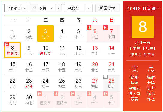 其中9月6日(星期六)、9月7日(星期日)為公休,9月8日(星期一,農(nóng)歷中秋節(jié))法定節(jié)假日