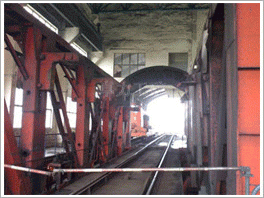 另外翻車機平臺為活動平臺,此結構形式使車輛在進入翻車機和隨翻車機翻轉時都對翻車機桁
