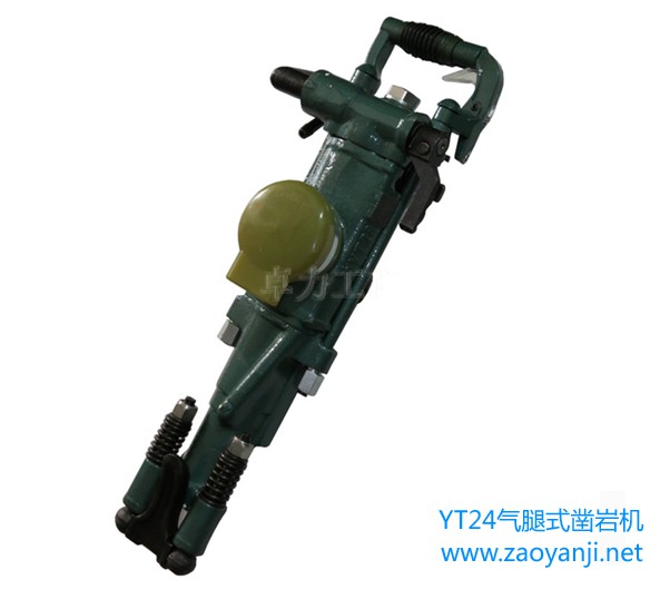 YT24型氣腿式鑿巖機,是一種新型高效的鑿巖機械。廣泛應用于礦山巷道掘進及各種鑿巖作業中鑿巖爆破,是冶金、煤炭、鐵路、交通、水利建設及國防石方工程不可缺少的重要機具。YT24型鑿巖機的適用范圍較廣,最適用于在中硬或堅硬(f=8-18)巖石上鑿巖水平和傾斜炮孔,也可垂直向上鑿頂板上的錨桿孔。炮孔直徑一般為34-42毫米,有效經濟的鉆孔深度可達5米。本機即可以根據巷道斷面大小與FT140BD型短氣腿或FT140BC型長氣腿配套使用,也可以裝在鉆車或鉆架上工作。 重量 26 千克 長度 661 毫米 缸徑 80 毫米 活塞行程 60 毫米 工作氣壓 0.4-0.63 兆帕 沖擊頻率 ≥31 赫茲 耗氣量 ≤66.7 升/秒 轉釬扭矩 23 牛·米 轉釬速度 300 轉/分 氣管內經 19 毫米 水管內徑 13 毫米 釬頭直徑 Ф34-42 毫米 釬尾規格 22×108±1
