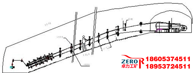 4、 斜巷內上托輪間距為5米左右,底托輪間距為10米左右,在兩組線上標定出固定位置。