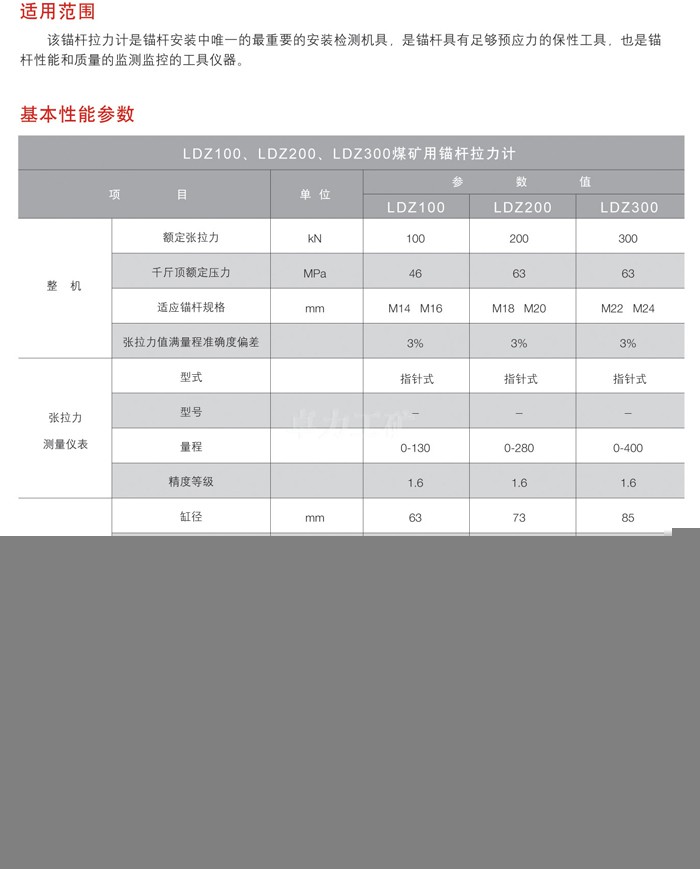LDZ100、LDZ200、LDZ300煤礦用錨桿拉力計