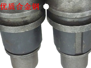 優勢一: 齒尖鑲有超粗粒壓燒結硬質合金鑲嵌, 合金直徑為22mm,超級耐磨 | 優勢二: 齒尖合金周圍覆蓋10條優質合金條, 保護胎體不受磨損,相對于耐磨焊層,更加耐磨, 使用壽命是普通截齒的2~3倍 |