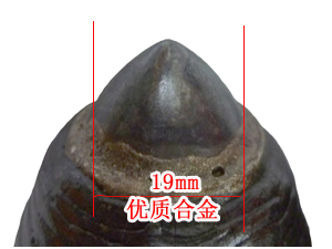 優勢一: 齒尖鑲有19mm合金 堅固耐磨 | 優勢二: 合金周圍融覆耐磨焊層, 有效保護好合金不脫落, 更長久耐用 |