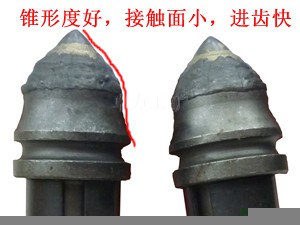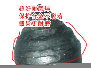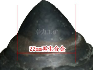 優勢一: 齒尖鑲有22mm再生合金, 與新合金相比較價格便宜, 截齒堅固耐磨 | 優勢二: 合金周圍融覆耐磨焊層, 有效保護好合金不脫落, 更長久耐用 |